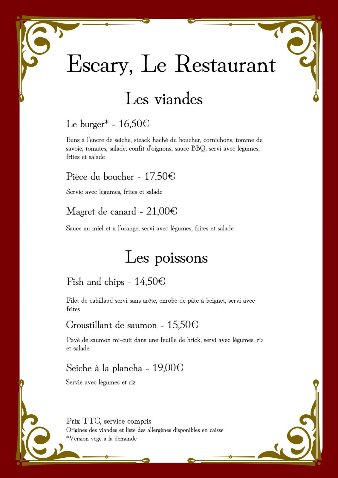 Notre chef, Guillaume, est un ancien compagnon du devoir, dont le parcours riche en expériences en pâtisserie, chocolaterie, confiserie et glacerie se reflète dans chaque plat que nous servons. Passionné par la gastronomie, il met un point d’honneur à utiliser des produits de qualité, issus de producteurs locaux, pour élaborer des plats savoureux et authentiques. Que vous soyez amateur de viandes délicatement préparées ou de légumes de saison, notre carte saura ravir vos papilles. De plus, pour nos convives végétariens, une grande partie de notre menu est disponible en version végétarienne, garantissant à chacun une expérience culinaire satisfaisante.
